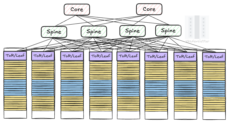 To understand interconnect requirements, let us start at the level of the AI datacenter and understand how the network is constructed.