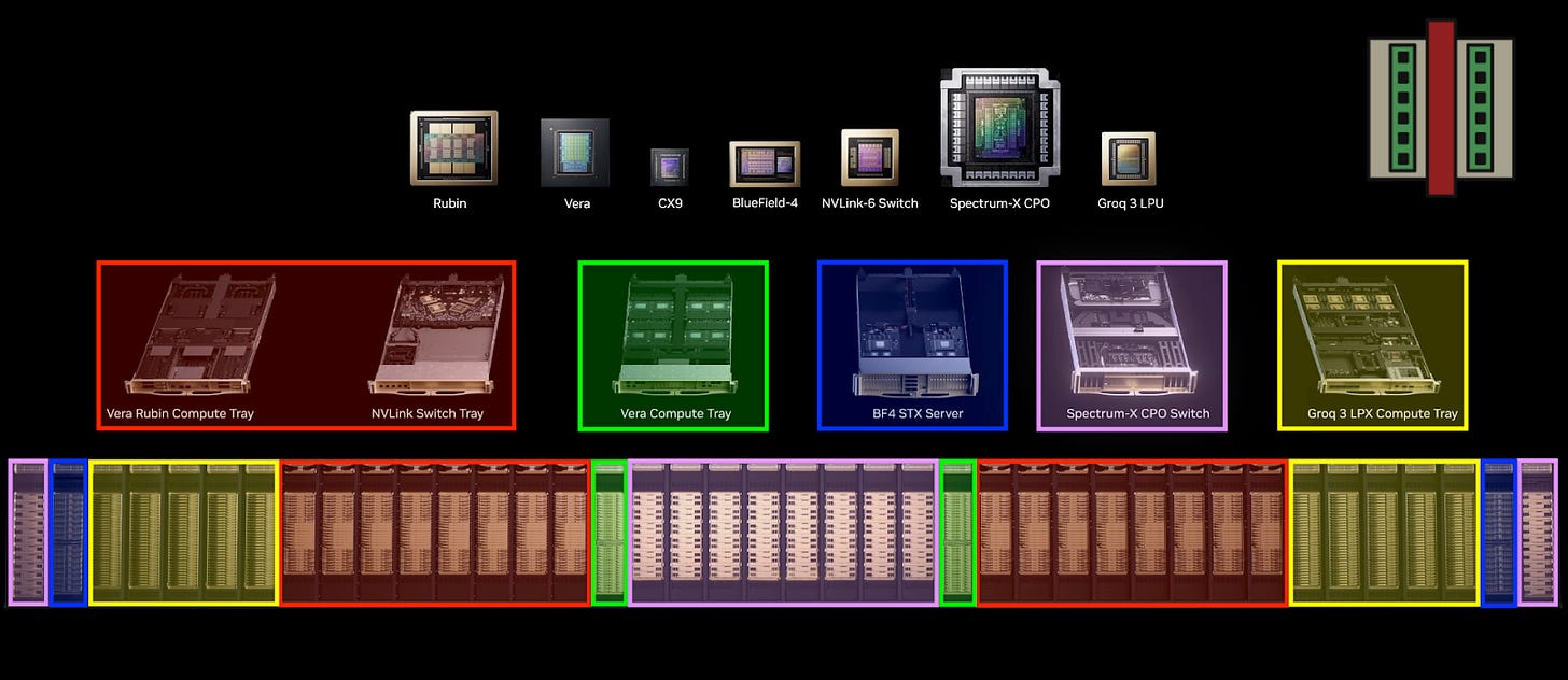 All in all, we have the following compute units now: 1,152 GPUs, 1,408 CPUs, 2,560 LPUs. In our earlier discussion below about the rise of CPUs for agentic AI, we predicted that CPUs might exceed GPUs at the rack scale. Additional CPU racks are straightforward to deploy since they only need ethernet connectivity, not the high-bandwidth interconnects required for weight transfer.
