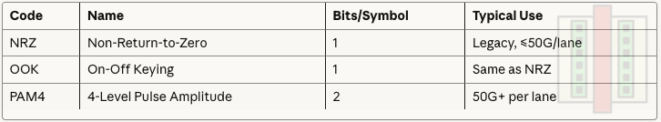PAM4: 4-level pulse amplitude modulation via: