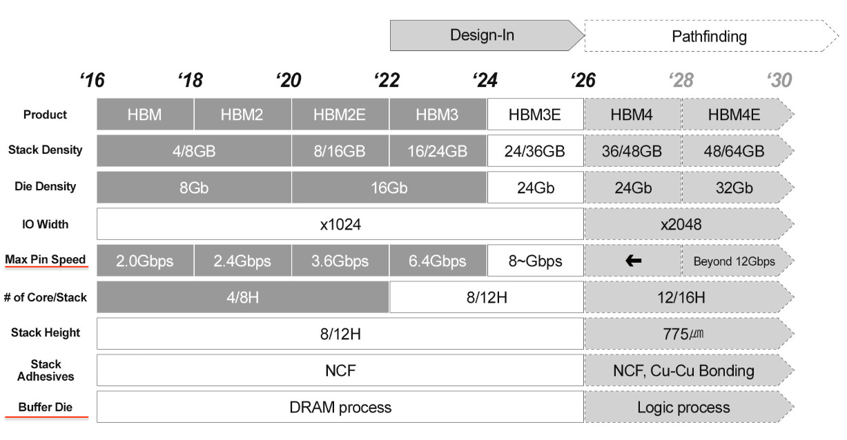 Buffer/base die: Up until now, DRAM process nodes have been used for the base die, but this is about to change in HBM4 and beyond.